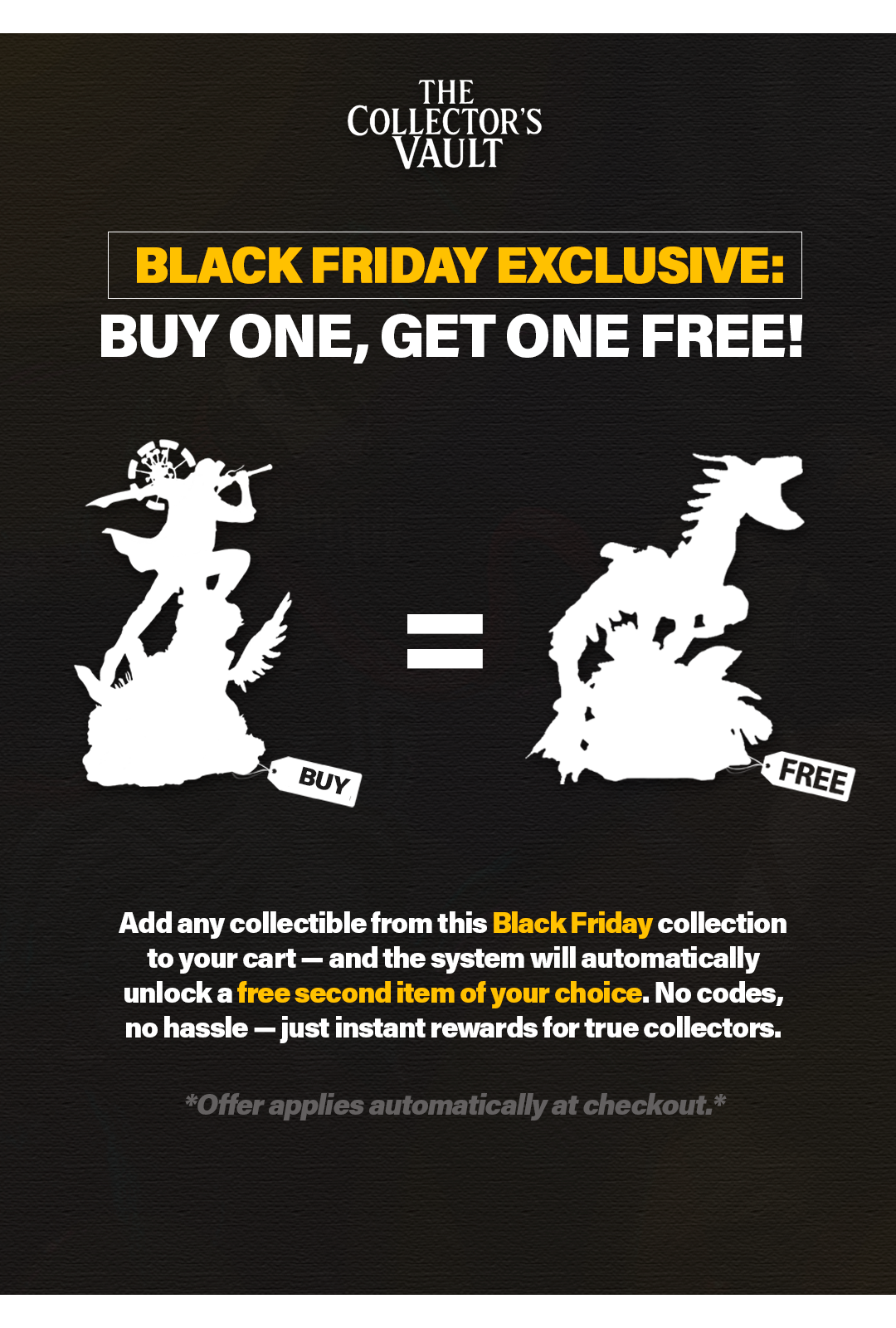 During the 72-hour Black Friday drop, when you purchase any qualifying collectible, you’ll receive a second piece — completely free. Both come fully certified and packaged in their own sealed Vault boxes. Quantities are extremely limited and disappear once the countdown ends.